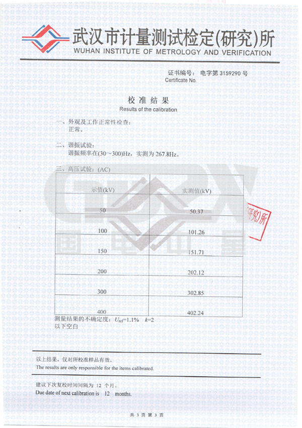 1.Rated output voltage: 0 - 1000kV, output frequency: 30 ~ 300Hz.Waveform: pure sine wave, THD <1.0%.